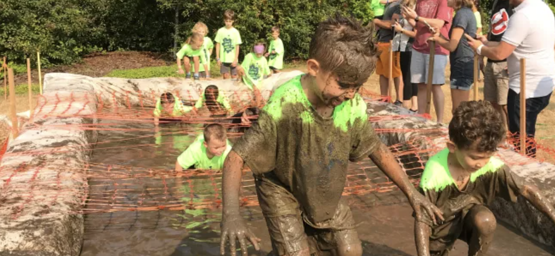 A magical summer park event for kids aged 4-10 to navigate safe obstacles to climb over, under, and through—ninja jumps, trenches, vertical walls, tunnels...you name it—for fun, all while getting muddy!